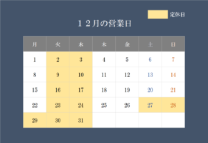 12月の営業日について